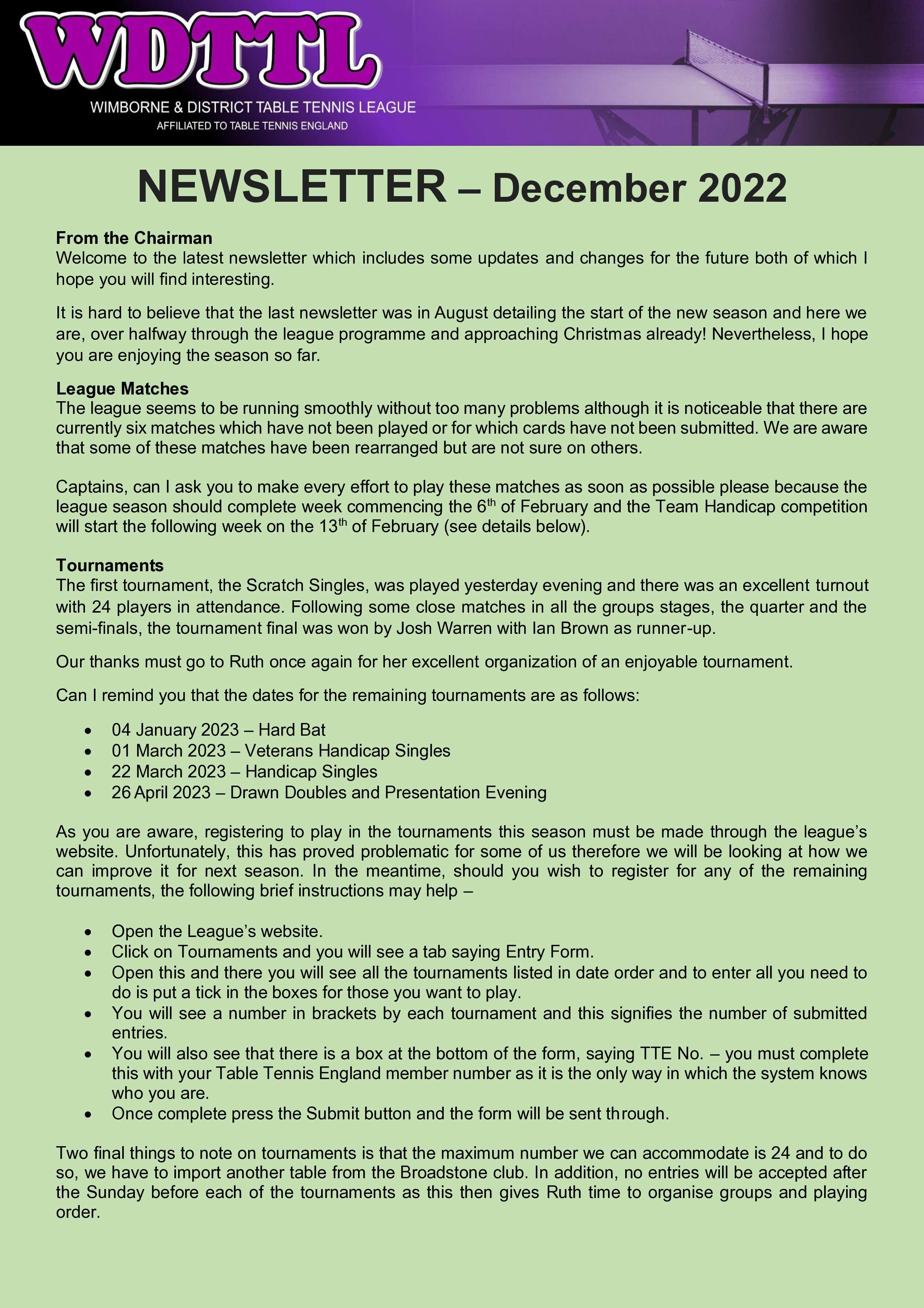 Wimborne & District Table Tennis League