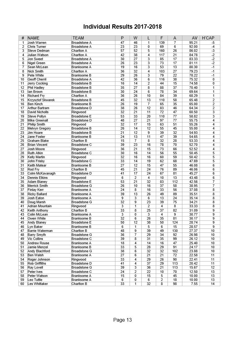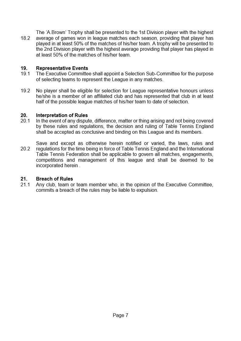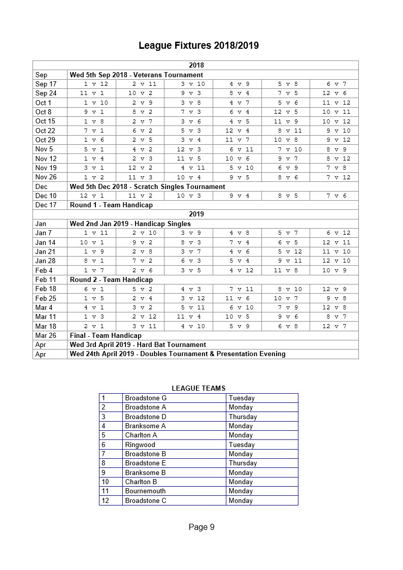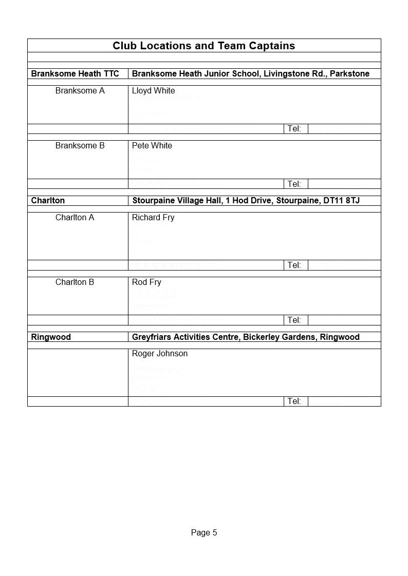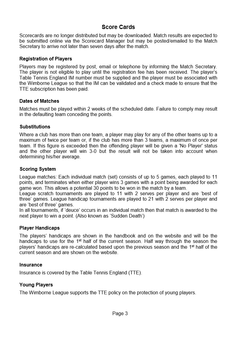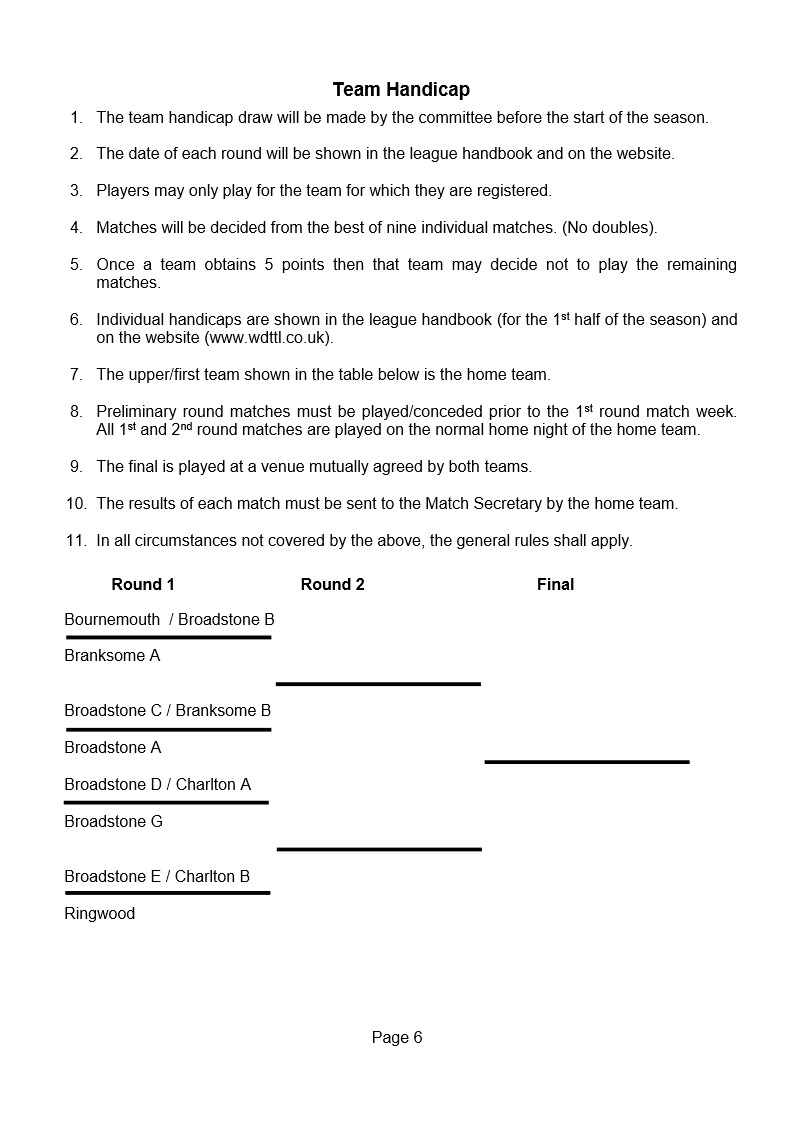 Wimborne & District Table Tennis League