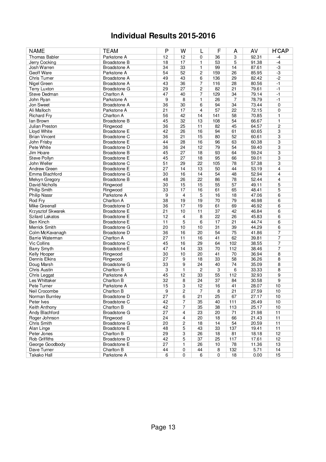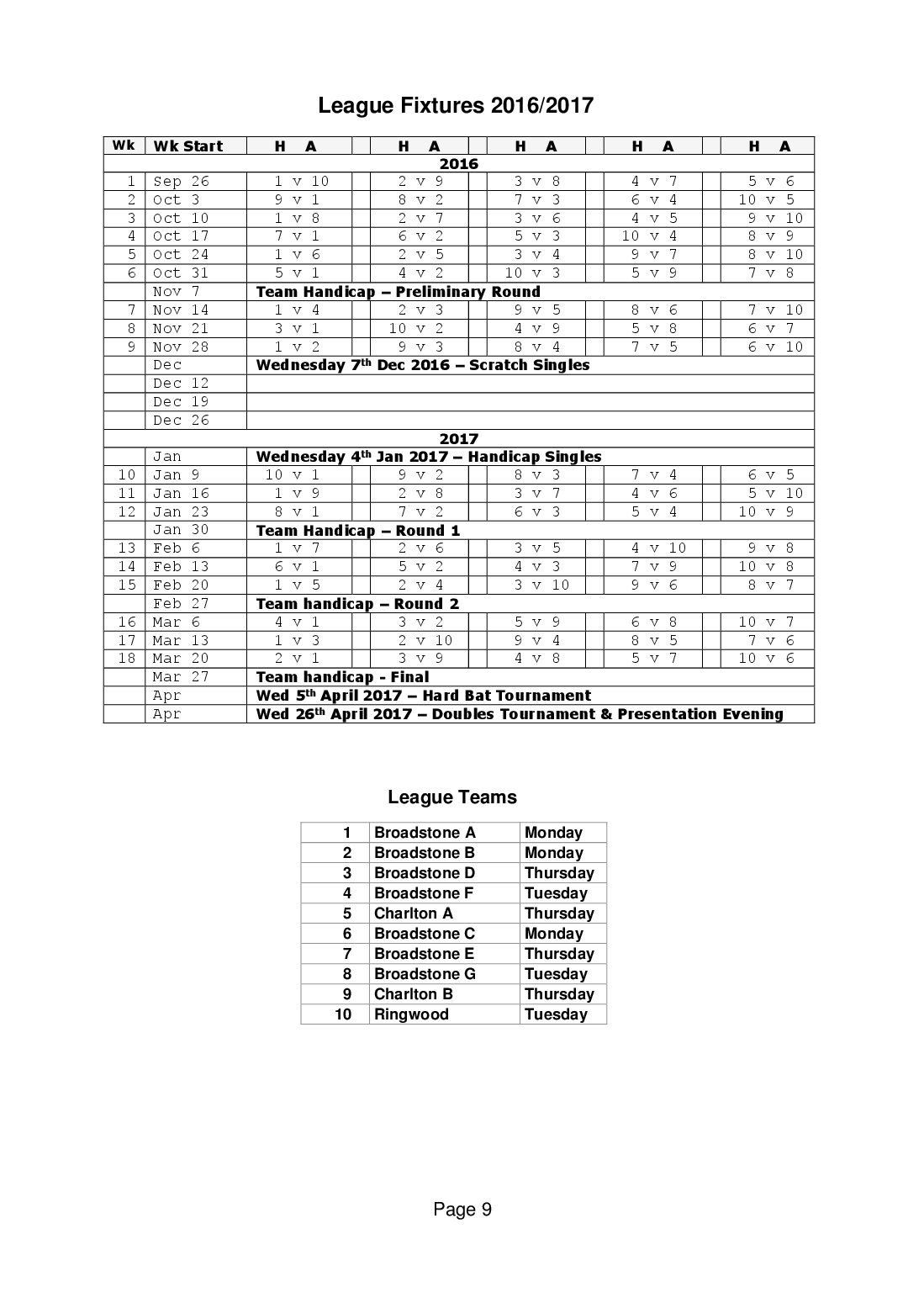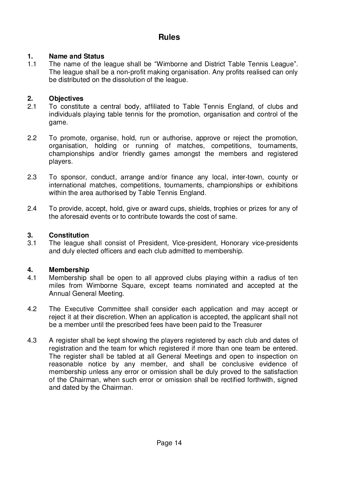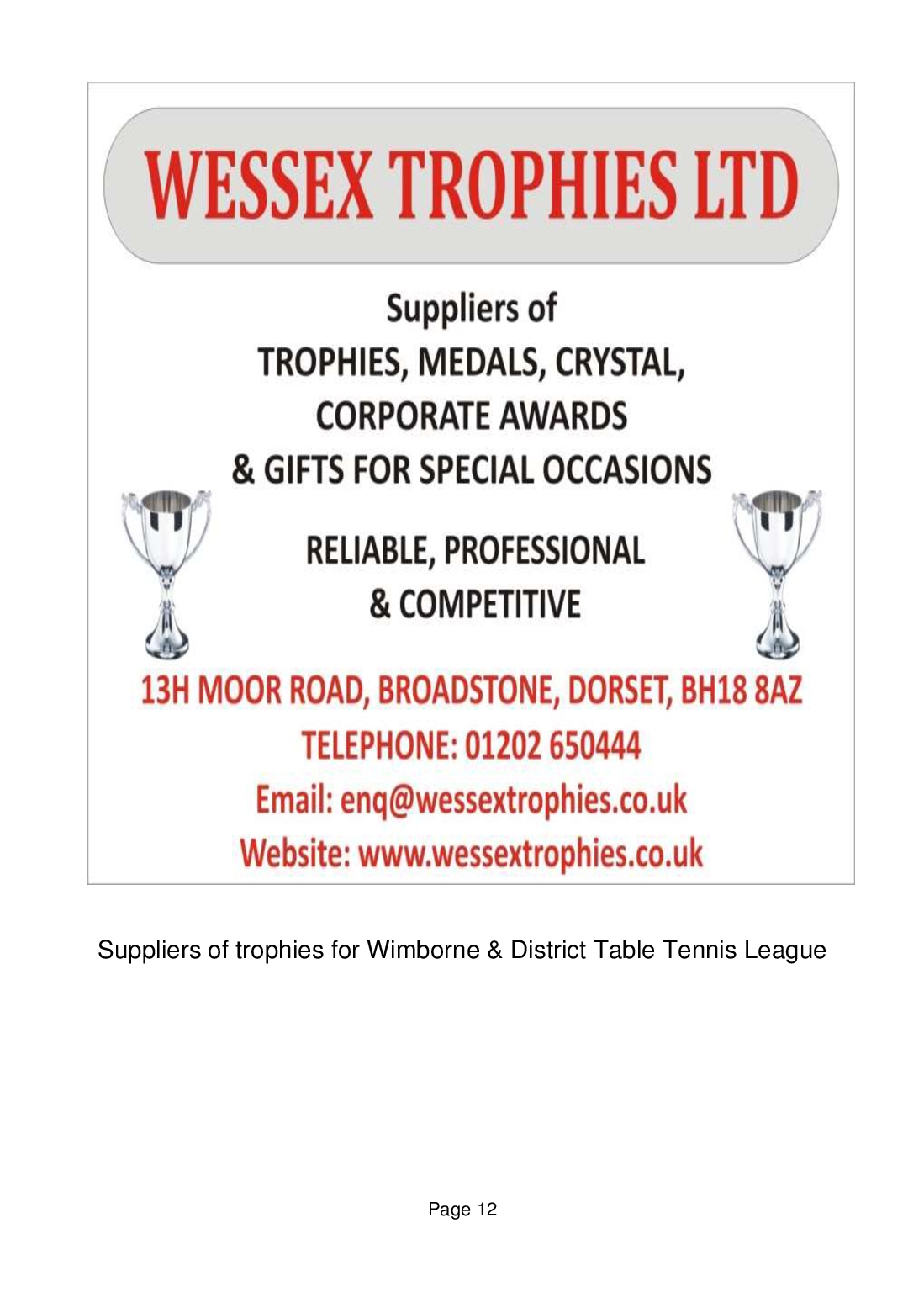 Wimborne & District Table Tennis League