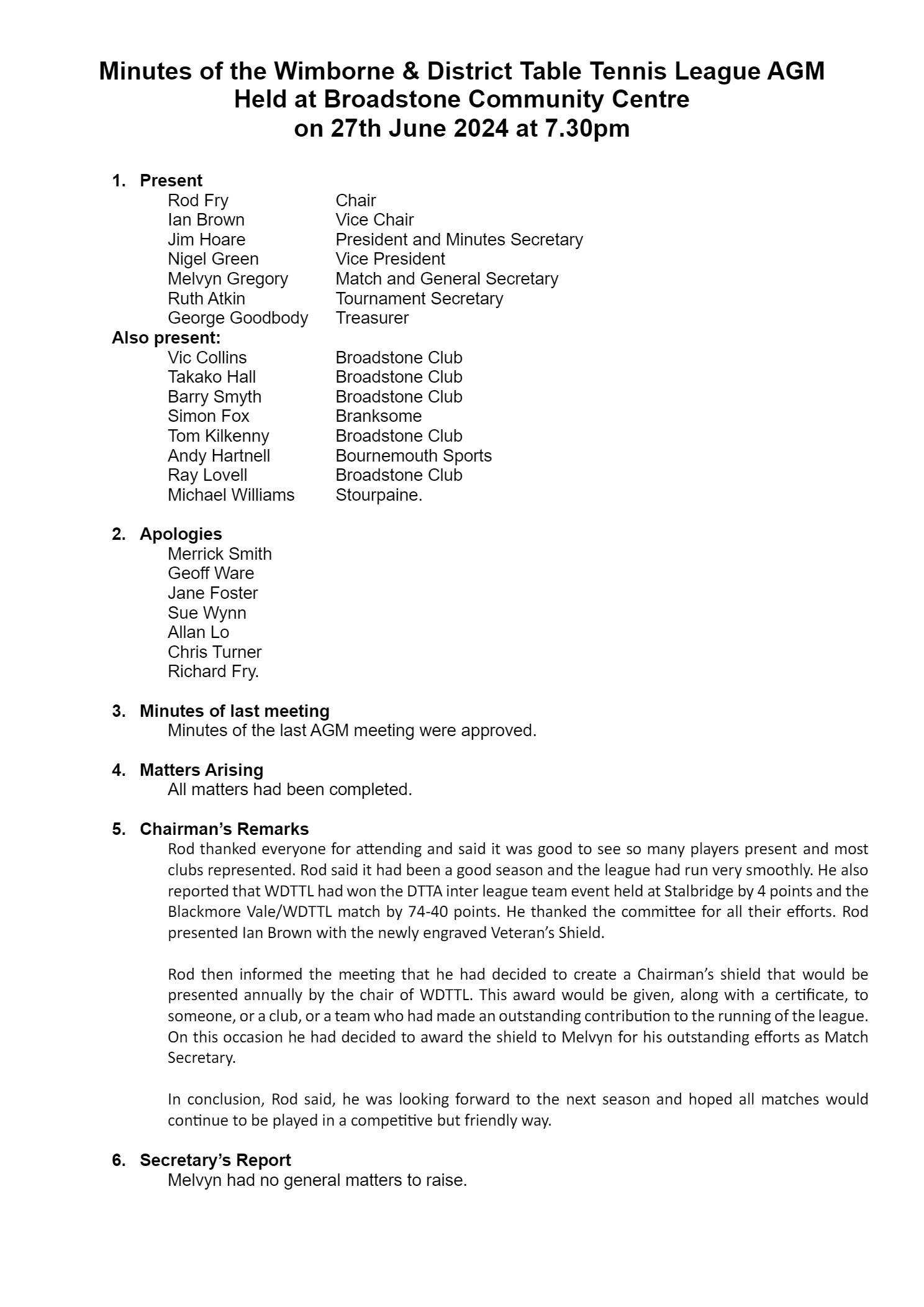Minutes of AGM 2024