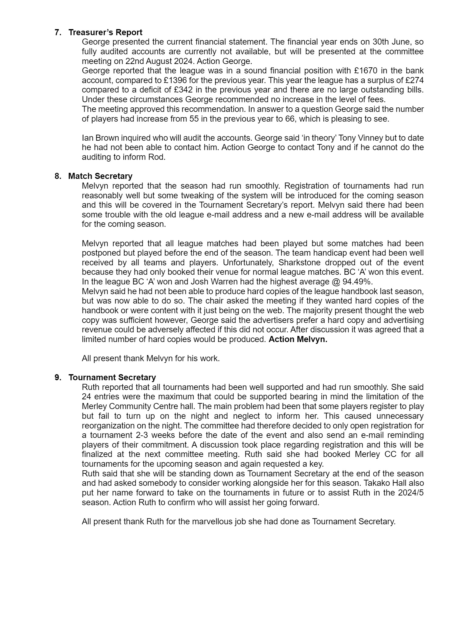 Minutes for 2024 AGM