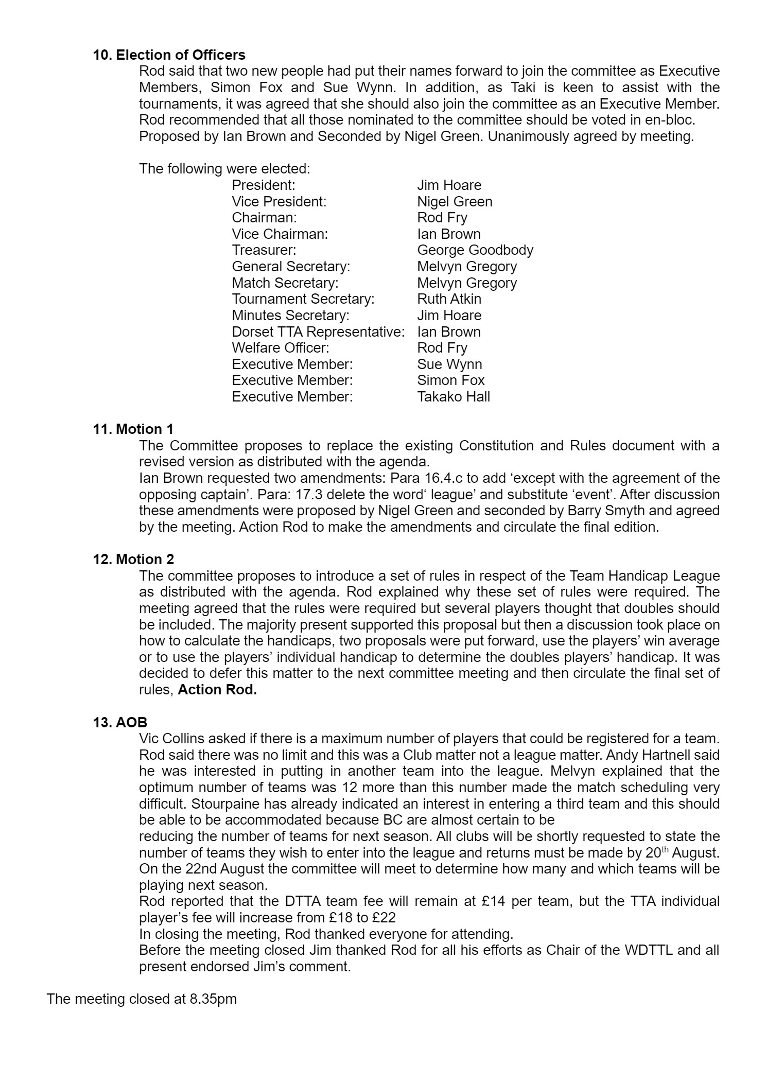 Minutes for 2023 AGM